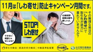 このため、厚生労働省、中小企業庁及び公正取引委員会は、11月を「しわ寄せ」防止キャ
